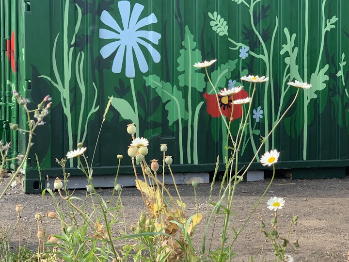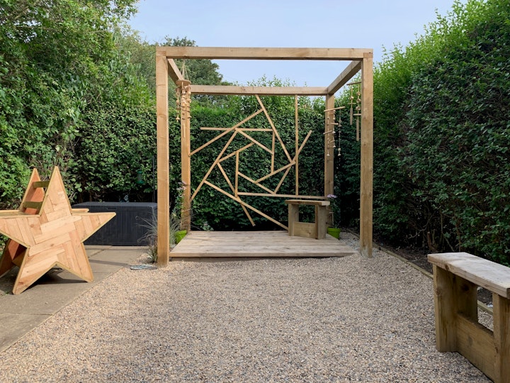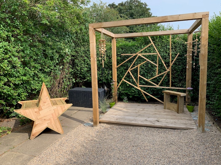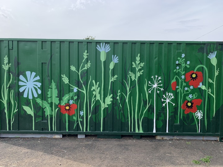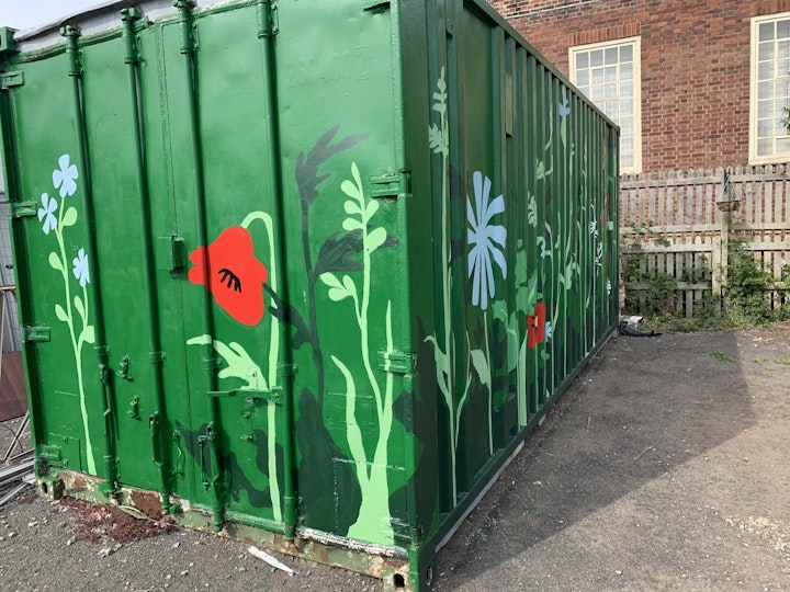 This was a Newcastle Arts Development 'Belonging' residency with Changing Lives and Fenham Library. We designed a recovery garden as a safe, tranquil space for people to relax while working on the allotment, but also as a flexible space to hold outdoor meetings. This has proved to be an especially welcome space in the event of a Global pandemic! We also transformed a rusty container which serves as a background to the allotment space.