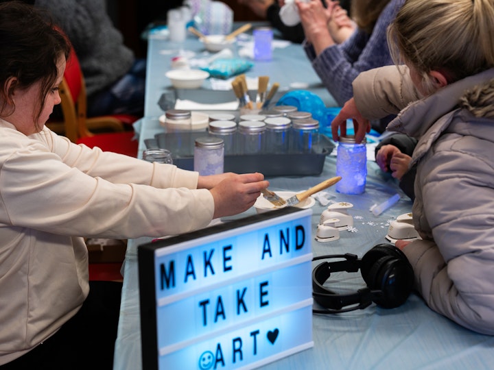 Blue Monday is classified as the most depressing day of the year, when mental health suffers most during the cold winter months. To counteract this, we worked with residents of Annfield Plain to create a lantern window and floral artwork to decorate the shops windows and bus shelters to make Annfield 'Bloom'. We held a community event on the 15th of January at Annfield Plain Community Centre to create lanterns and join a silent disco.